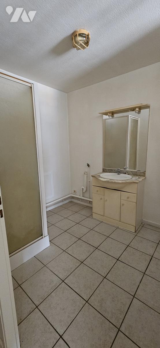 Au centre ville, au RDC d'un petit immeuble un appartement composé de Cuisine ouverte sur séjour, chambre, salle d'eau, WC.